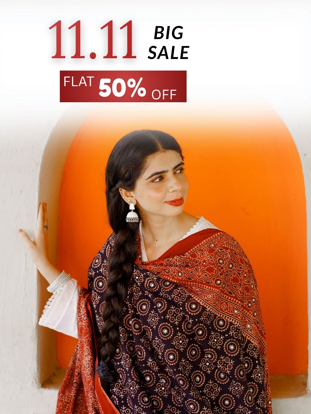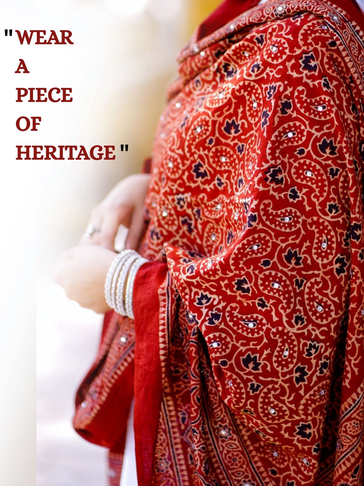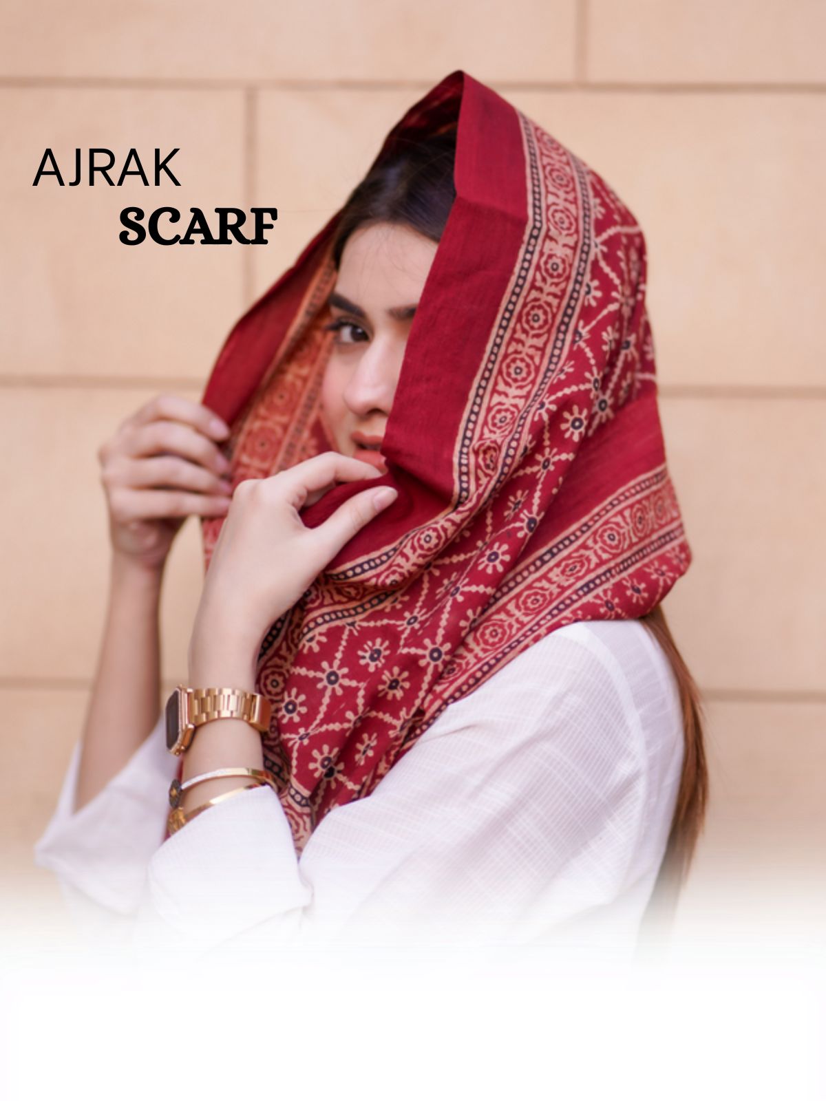 Kohsar Ajrak Chaddar – Classic Maroon (Hand-Block Printed)
