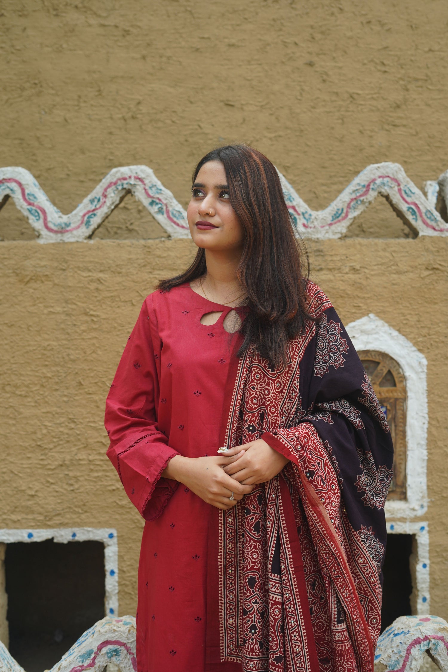 Hoor Ajrak Chaddar Maroon: Grace in Every Detail