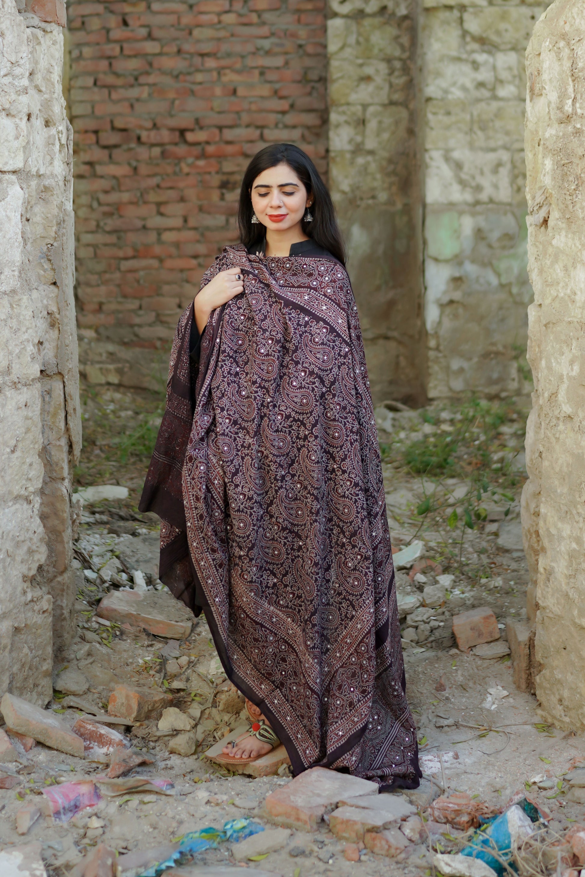 Introducing the Hoorain Ajrak Chaddar, a timeless expression of tradition blended with refined elegance. Crafted through the centuries-old art of authentic Ajrak hand block printing, this exquisite chaadar celebrates cultural heritage with a bold yet graceful appeal.
